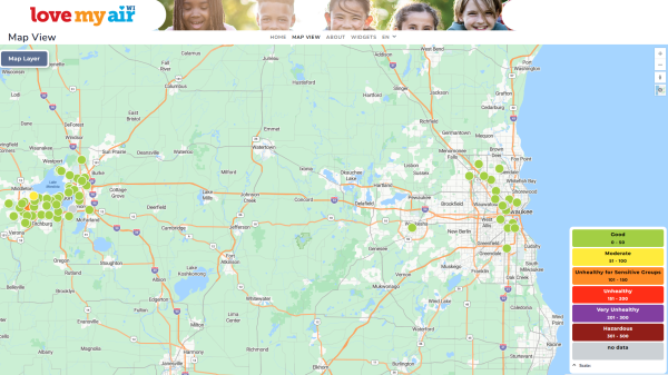 Love My Air Wisconsin (LMA WI) is a free K-12 school-based program that provides air quality data, education and action items. These tools help communities protect their health and respond to poor air quality.