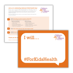 We all have the power to improve the health of children in Wisconsin. Thank you for showing your support by posting a photo on social media for National Child Health Day using #ForKidsHealth.