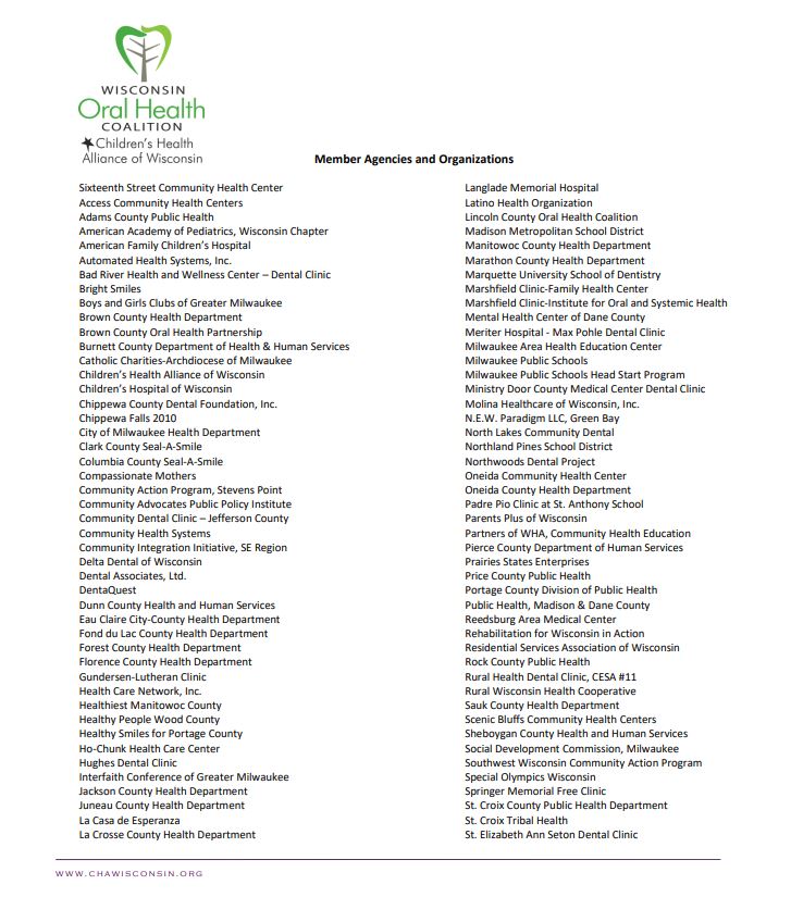 View Wisconsin Oral Health Coalition member agencies and organizations.